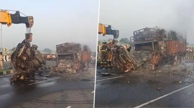 कार में सवार परिवार की चीखें थमीं आग में: कैंटर से भिड़ंत के बाद जिंदा जलने की दर्दनाक घटना
