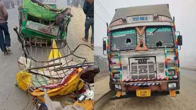 ट्रक की टक्कर में ऑटो चालक की पत्नी और बेटे की मौत, तीन अन्य घायल