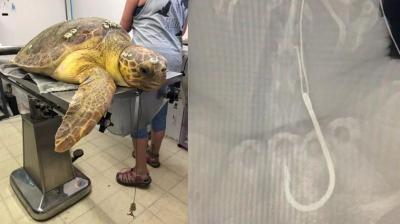 फिश हुक में फंसकर कछुए की जान पर बन आई, रेस्क्यू टीम ने किया रोमांचक बचाव