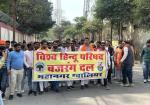 नगर निगम पर प्रदर्शन, बैरिकेडिंग के बीच कार्यकर्ताओं ने किया हनुमान चालीसा का पाठ