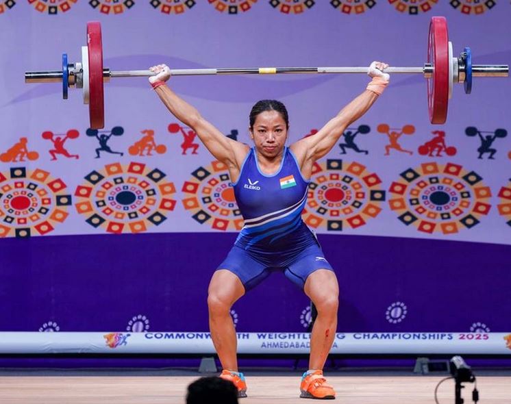 भारत की ओलंपिक पदक विजेता भारोत्तोलक मीरा बाई चानू को यहां हुई राष्ट्रमंडल भारोत्तोलन चैंपियनशिप में स्वर्ण पदक मिला है। चाने ने यहां स्वर्ण पदक जीतने के साथ ही ग्लासगो में होने वाले 2026 राष्ट्रमंडल खेलों के लिए सीधे प्रवेश हासिल किया है। चानू ने 48 किग्रा वर्ग में ये स्वर्ण पदक जीता। चानू ने कुल 193 किग्रा (84 किग्रा स्नैच के अलावा 109 किग्रा क्लीन एंड जर्क) में वजन उठाकर ये स्वर्ण पदक जीता। उन्होंने स्नैच, क्लीन एंड जर्क और कुल वजन में नए रिकॉर्ड भी स्थापित किए। वहीं मलेशिया की आइरीन हेनरी ने 161 किग्रा भार वर्ग में रजत और वेल्स की निकोल रॉबर्ट्स ने 150 किग्रा भार वर्ग में कांस्य पदक जीता।