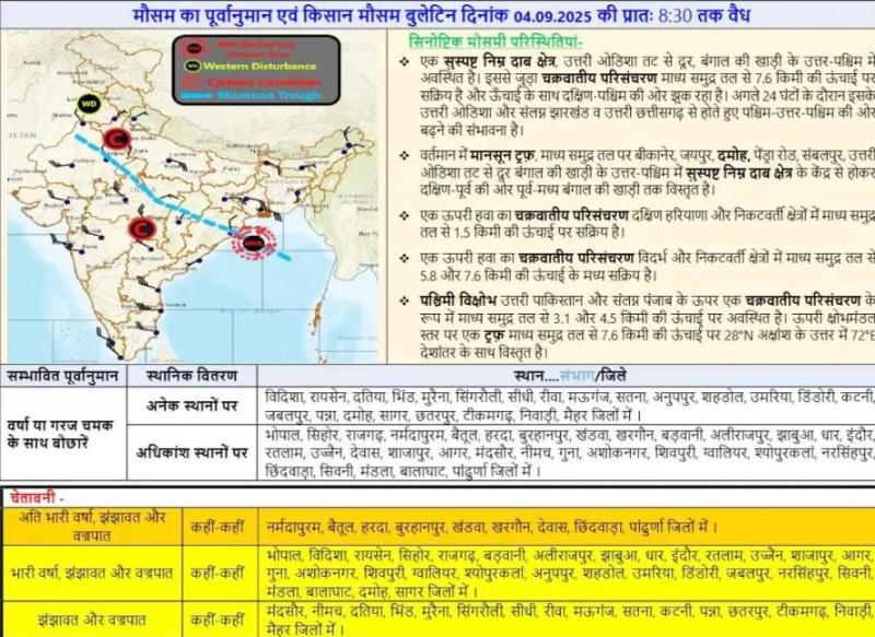 मौसम विभाग के मुताबिक, मानसून ट्रफ बीकानेर, जयपुर, दमोह, पेंड्रा रोड होते हुए ओडिशा तट से दूर बंगाल की खाड़ी तक विस्तृत है। एक निम्न दबाव क्षेत्र अगले 24 घंटे में उत्तरी ओडिशा और संलग्न झारखंड से पश्चिम-उत्तर-पश्चिम की ओर बढ़ सकता है। इसके साथ ही विदर्भ और निकटवर्ती क्षेत्रों में ऊपरी हवा का चक्रवातीय परिसंचरण सक्रिय है। वहीं, दक्षिण हरियाणा और आसपास के क्षेत्रों में 1.5 किमी ऊंचाई पर भी चक्रवातीय परिसंचरण सक्रिय है।